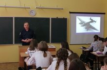 В 11 классе прошёл классный час. Наиль Вильевич Сабиров из поиского отряда "Выстрел" рассказал историю погибшего самолёта, который разбился в Чистопольском районе в 1943 году и о судьбе погибших лётчиков.