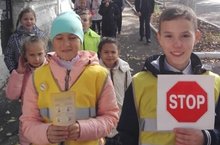Участники отряда ЮИД "Клаксон" в рамках проведения мероприятия "Внимание дети!" провели акцию "Шагающий автобус" для учеников 2-го класса. ЮИДовцы прошли с ребятами по улицам города, повторили правила хождения по пешеходному переходу, изучили встретившиеся дорожные знаки на пути. В конце акции участники отряда раздали памятки второклассникам "Памятка для пешехода и велосипедиста"