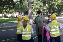 Встречают первоклассников отряд ЮИД "Клаксон"" 01.09.2019