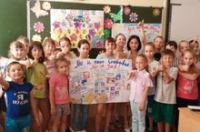 В младших отрядах проводился конкурс поделок «Волшебный мир бумаги». Ребята учились создавать различные поделки и аппликации из бумаги. У ребят из 1 отряда получились красочные рыбки.