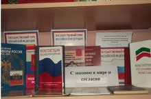 В целях повышения правовой культуры подрастающего поколения, формирования гражданской активности, осознанного отношения к законам, к 25-летию Конституции Республики Татарстан и изучению основных статей Конституции в школьной библиотеке оформлен информационный уголок под названием «С закон в мире и согласии». -