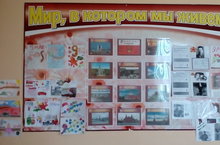 В преддверии 72-й годовщины в Великой Победе над фашистской Германией учащиеся начальных классов МБОУ "СОШ №1" оформили стенд "Великая Победа глазами детей". Там разместили плакаты, рисунки посвященные данной тематике. Так же вывесилили портреты и рассказы о своих родственниках, которые приняли участие в ВОВ.
