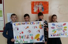 «Мы все равные!»В МБОУ «СОШ №1» среди учебных классов прошел конкурс плакатов, посвященный Международному Дню толерантности. Множество работ было рассмотрено Совет советом старшеклассников и членами жюри состоящей из учителей и были выявлены победителей. Ученики проявили творчество и художественный талант.В начальных классах так же прошли уроки толерантности. Ребята рассказывали о разных национальностях, об их национальной одежде, блюдах и традициях, а так же собрали «Цветок толерантности».