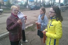 22 апреля 2016 г. в рамках добровольческой акции «Весенняя неделя добра – эстафета добрых дел» "ДОБРЫЙТАТАРСТАН" учащиеся МБОУ «СОШ №1» провели на улицах города акцию «Георгиевская ленточка». Было роздано более 100 лент. -