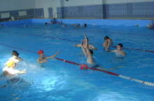 По понедельникам и четвергам ребята нашего лагеря посещают бассейн, где не только плавают, но и проводят игры
