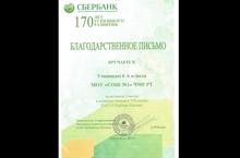 В ноябре 2011 года учащиеся нашей школы приняли активное участие в творческих конкурсах, проводимых Чистопольским отделением ОАО «Сбербанк России». Ученик 6А класса Злыднин Тимур стал победителем в номинации «Лучшее стихотворение».