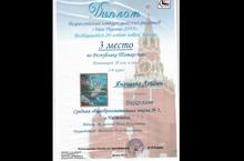 Поздравляем Галимову Лилию, учащуюся класса, занявшую 2 место по Приволжскому федеральному округу во Всероссийском конкурсе детских рисунков «Моя Родина-2011». -