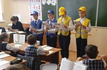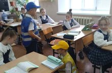В рамках месяца безопасности участники отряда ЮИД клаксон провели беседу о ПДД с учащимися 4-х классов и раздали им "Дневники безопасности ".