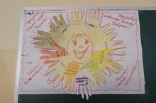 Завершилось занятие созданием плаката "солнышко дружбы". -