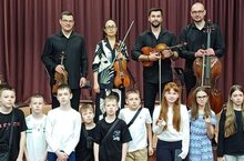 учащиеся школы посетили ДТДиМ , где насладились выступлением квартета государственного симфонического оркестра Республики Татарстан.