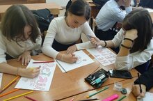 Педагог-психолог школы продемонстрировала небольшой видеоролик об опасности вовлечения в группы экстремистского характера. В конце встречи учащиеся сделали пано из рисунков на данную тему.