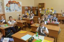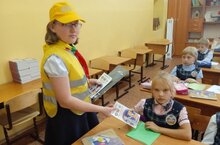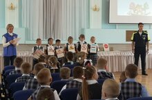 Гости провели игровую программу по ПДД, загадывали загадки о безопасности на проезжей части и вручили ученикам 1-х классов тетради юного пешехода."