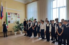 Сегодня утро учащихся и учителей вновь началось с поднятия флагов Российской Федерации и Республики Татарстан.