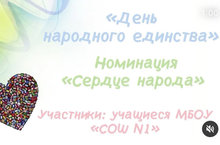 Учащиеся школы принимают участие в муниципальном конкурсе, посвящённый празднику «День народного единства» в номинации «Сердце народа» -