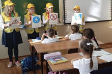 В рамках республиканского межведомственного профилактического мероприятия "Пешеход" Участники отряда ЮИД "Клаксон" провели занятие с учащимися начальных классов "В гостях дорожные знаки". ЮИДовцы рассказали ребятам о дорожных знаках для пешеходов, задавали вопросы и загадывали загадки.