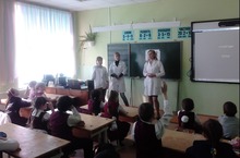 Сегодня нашу школу посетили студенты Чистопольского медицинского колледжа. Они подготовили и провели лекции для учащихся начальных классов с просмотром мультфильма на тему "Я уколов не боюсь...".