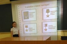 День Героев Отечества 10.12.2018 День Героев Отечества в России — это памятная дата, которая отмечается в нашей стране ежегодно 9 декабря. Она установлена Федеральным законом Российской Федерации № 22-ФЗ от 28 февраля 2007 года «О внесении изменения в статью 1-1 Федерального закона «О днях воинской славы и памятных датах России». Надо сказать, что свою историю данный праздник ведет еще с 18 века. Эта декабрьская дата приурочена к выдающемуся событию эпохи правления императрицы Екатерины II — в 1769 году она учредила орден Святого Георгия Победоносца. В те годы этим орденом награждались воины, проявившие в бою доблесть, отвагу и смелость. В 2007 году российские парламентарии выдвинули идею о возрождении данного праздника (который затем и был установлен). Авторы законопроекта пояснили, что возрождение традиции празднования Дня героев — это не только дань памяти героическим предкам, но и чествование ныне живущих Героев Советского Союза, Героев Российской Федерации, кавалеров ордена Святого Георгия и ордена Славы. А также они выразили надежду, что новая памятная дата будет способствовать «формированию в обществе идеалов самоотверженного и бескорыстного служения Отечеству». В честь этой даты в школе прошли классные часы, на которых ребята познакомились с героями Советского Союза и героями России, которые и ныне живут среди нас и служат на благо Отечеству.