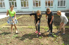 2 день.В этот день девочки активно поработали на цветочной клумбе, и оказали помощь младшим в оформлении отрядной газеты.
