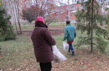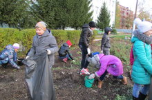 Сегодня уащиеся школы провели уборку на школьной клумбе.