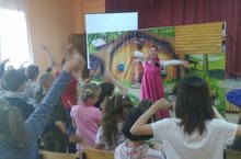 Для ребят пришкольного лагеря "Краски лета " был организован просмотр казанского кукольного спектакля "Лесная сказка".Дети были не только зрителями,но и участниками игровых танцевальных упражнений от героини мультфильма "Маша и медведь" -