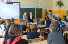 В гости к ребятам пришли руководитель школьного музея Е.А.Лыхина и члены музейного кружка Раимова Арина и Петрова Катя. Они очень увлекательно рассказывали об истории портфеля, пенала, ручки, карандаша, линейки, о древних тетрадях, об истории возникновения письма. Особенно запомнился рассказ о перьевых ручках, ведь каждому посчастливилось самому попробовать написать! Выступление сопровождалось красочной презентацией. Ребята получили очень ценную и познавательную информацию.