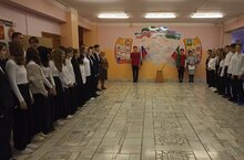 Ровно в восемь утра началась торжественная линейка в 4 школе. В церемонии выноса флага РФ, РТ и исполнения Государственных гимнов приняли учащиеся 9-х классов. Право вынести знамёна предоставили членам отряда Юнармия.