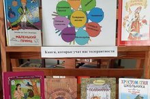 В школьной библиотеке в рамках месячника Экстремизму- Нет!, представлена книжная выставка "Книги, которые учат нас толерантности ".