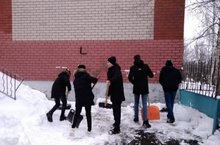 Обучающиеся 8х классов приняли участие в расчистке территории школы от снега.