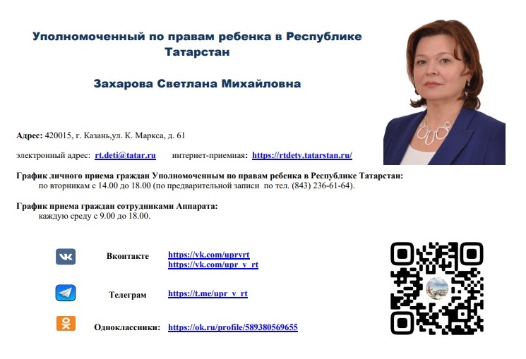 Уполномоченный по правам ребенка в Республике Татарстан - Захарова Светлана Михайловна