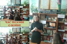 В информационно-библиотечном центре в рамках предметной недели русского языка и литературы для учащихся 8Б класса (учитель Хуснуллина И.Г.) и 8Г класса (учитель Потасьева В.А.) состоялся Час поэзии о войне. Учащиеся 8Б класса прочитали стихотворения о Великой Отечественной войне М.Ждалиля, А. Твардовского, К. Ваншенкина и других. А учитель русского языка и литературы Потасьева Виктория Александровна познакомила собравшихся со стихами собственного сочинения "Баллада о лошади", "Сидели двое", "Сталинград".