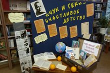 Для учащихся младших классов в школьном информационно-библиотечном центре работает книжная выставка "Чук и Гек" - счастливое детство", посвященная 80-летию выхода книги А.П. Гайдара "Чук и Гек".