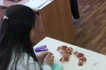 Для учеников 7А класса совместно с патриотическим центром "Ватан"был проведен мастер-класс"Символ Победы"