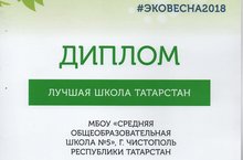 Номинация «Экошкола Татарстана-2018» - "Средняя общеобразовательная школа №5" города Чистополь;