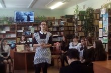 В школьной библиотеке учащимися 10 класса была подготовлена литературно-музыкальная композиция "Я благодарна поэтам...", посвящённая 125-летию со дня рождения Марины Цветаевой.