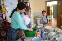 Воспитанники трудового лагеря занимались подготовкой школы к новому учебному году. Сегодня девочки лагеря убрались в кабинете технологии.
