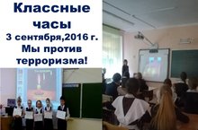 В субботу, 3 сентября, во всех классах в рамках иесячника "Экстремизму -нет!" проведены классные часы "мы против терроризма!"