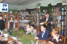 В школьной библиотеке к 120-летию со дня рождения Сергея Есенина учащиеся 9А класса (учитель литературы И.Г. Хуснуллина) совместно с библиотекарем Титовой Е.Н. и учителем математики Артемьевым А.А. показали литературно-музыкальную композицию "Мои стихи, спокойно расскажите про жизнь мою...".