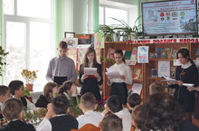 В канун Праздника Победы в школьной библиотеке для учащихся 6, 7-х классов была показана литературно-музыкальная композиция "Юные герои Великой Отечественной войны". Мероприятие было подготовлено учащимися 9А класса (Шарафутдинова К., Горячева Д., Нуртдинова А., Трунова А., Бильданова З, Бибишев Р.), учителем истории Однакиной С.А. и библиотекарем Титовой Е.Н.