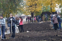 27 сентября в рамках общегородского субботника по санитарной очистке и благоустройству города учащиеся школы (245 чел.), и педагогический и технический персонал школы приняли участие в уборке пришкольной территории.