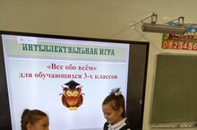 Сегодня, в 3В классе (кл рук. Насибуллина И.С.) прошла игра-викторина "Всё обо всем". Цель - закрепить и углубить знания детей об окружающем мире, формировать правильное отношение к природе и окружающему нас миру, развивать у учащихся познавательный интерес. В игре было несколько этапов, каждый из которых состоял из вопросов, посвященных определенной теме: растения, грибы, плоды, животные, города, памятники культуры, исторические деятели.