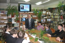 В рамках Года любви к родному краю в школьной библиотеке состоялась встреча учащихся 8В (классный руководитель Нурутдинова Р.Р.) и 8Г (классный руководитель Абдрахманова А.Г.) классов с местным поэтом, председателем общества слепых Гардиевым Рифкатом Гарайхановичем.