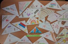 Сегодня ученики 2Б класса провели акцию "Письмо солдату". Они сложили треугольники и разукрасили их. Внутри будут написаны письма солдатам и отправлены в зону СВО.