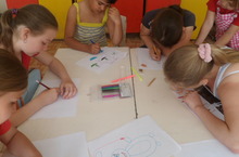 Воспитанники лагеря занимаются художественным трудом.
