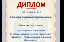 Поздравляем учителя физкультуры Казакову Светлану Владимиролвну, занявшую 2 место во II Международном конкурсе презентаций портфолио "Профессионалы в системе образования". Молодец!!!