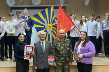 Урок Мужества с учащимися школы провели Дудин Николай Николаевич и Шигабутдинов Рашид Хамитович /Чистопольское городское отделение, межрегиональный Союз Советских Офицеров имени героя Советского Союза адмирала Ховрина/