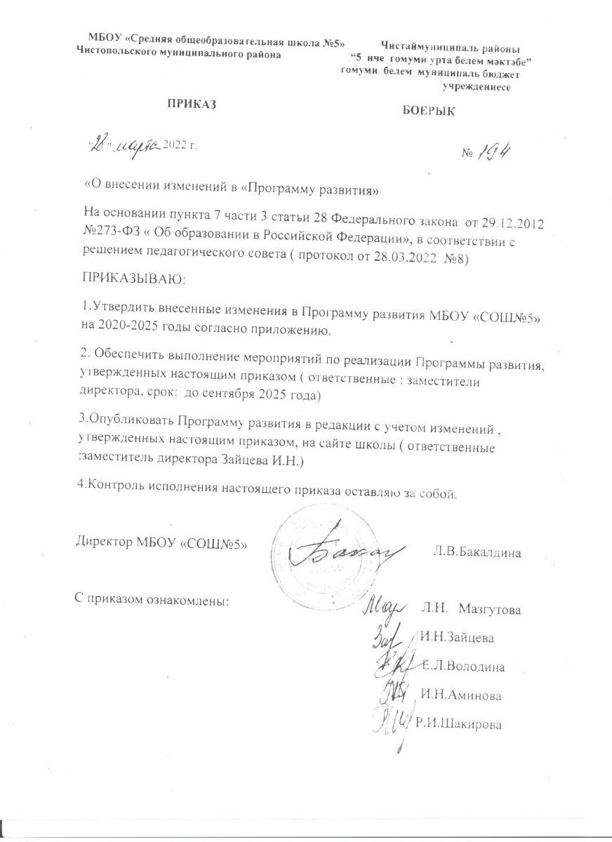 Муниципальное бюджетное общеобразовательное учреждение «Средняя общеобразовательная школа №5» Чистопольского муниципального района Республики Татарстан - Татарстан Республикасы Чистай муниципаль районы "5 нче урта гомуми белем мәктәбе"гомуми белем муниципаль бюджет учреждениесе