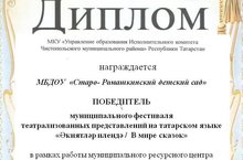 Муниципальное бюджетное дошкольное образовательное учреждение "Старо - Ромашкинский детский сад" Чистопольского муниципального района Республики Татарстан / Татарстан Республикасы Чистай муниципаль районы мәктәпкәчә белем бирү муниципаль бюджет учреждениясе «Иске Роман балалар бакчасы»