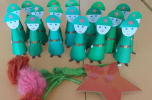 Тоже с вами встанем в строй.Всех наших пап и наших мальчиков поздравляем с Днём защитников Отечества! А на подарок воспитанники изготовили из бумаги солдатиков.Әтиләребезне һәм малайларыбызны Ватанны саклаучылар көне белән котлыйбыз! Ә бүләккә балалар кәгазьдән солдатлар ясадылар.