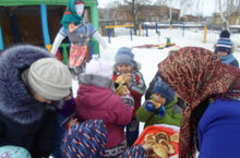 Изучая традиции разных народов сегодня познакомились русским праздником "Масленница" и провели его в детском саду во время прогулки. Дети с удовольствием спели русские песни "Веселая песенка", "Мы матрешки", "Самовар" на русском языке, танцевали под музыку "Калинка". В конце праздникасожгли чучелу и угощались блинами.