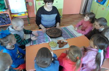 Танып белү һәм сөйләм теле өлкәсе, «Ашамлыклар һәм савыт – саба» темасы буенча балаларны татар халык ашлары бәлеш һәм өчпочмак белән таныштырдык. Бу төр ризыкларныӊ нәрсәдән һәм ничек пешерелгән өйрәндек. Балалар «Кунак чакырдык» сюжетлы-рольле уен уйнадылар